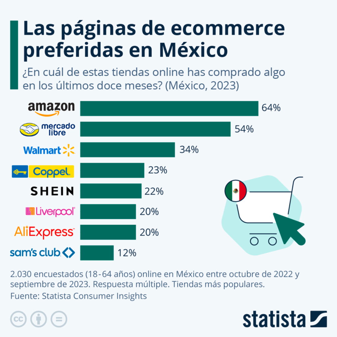 不同电商平台在墨西哥的市场份额 数据:stasista