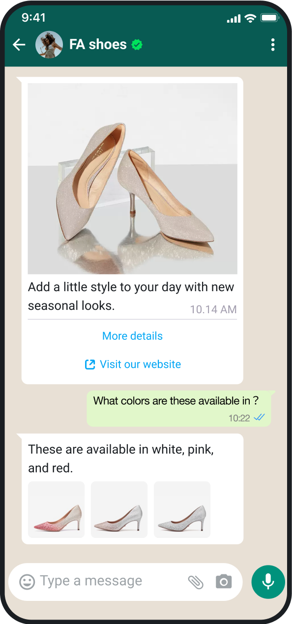 通过WhatsApp对话即时响应客户需求,高质量的沟通打造紧密的客户关系,从而促进整体销售